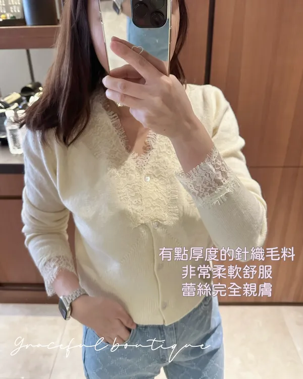 這款也是因為闆娘自己要才進的~他是有厚度的針織毛料喔~所以春天秋天冬天可以穿蕾絲超美超細緻~完全不扎不刺請放心真的很美很溫柔真的千萬別錯過啊!!!下單前代表您已詳閱並且同意我們的[購物須知]以及[售後服務]關於商品追加期限,無退換貨服務,與瑕疵的定義都能夠接受我們有實體店面歡迎蒞臨試穿