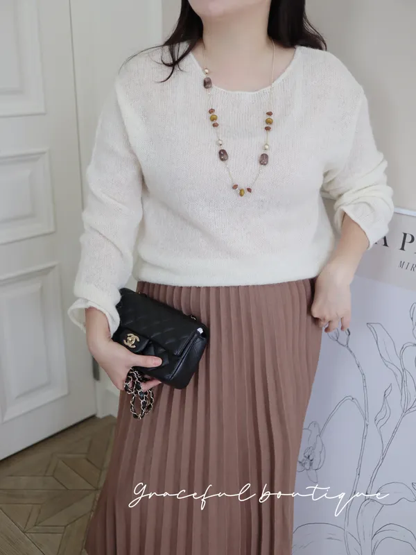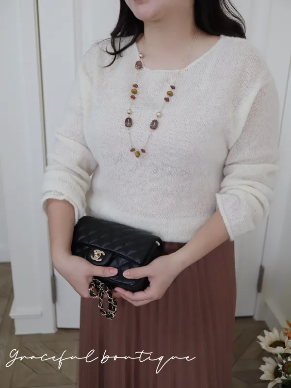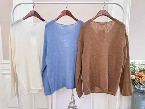 ▪️含30%羊毛/建議內搭小可愛 這件真的是明知道台灣還穿不到毛衣自己還硬要買的單品、超喜歡這種薄毛衣帶點微透的感覺、而且非常舒服請放心每件闆娘們都是自己穿過才會決定要不要上架喔!下單前代表您已詳閱並且同意我們的[購物須知]以及[售後服務]若都能接受再進行下單唷我們有實體店面 歡迎蒞臨試穿