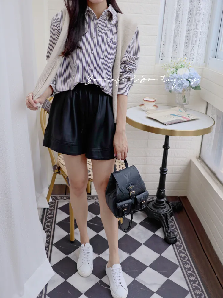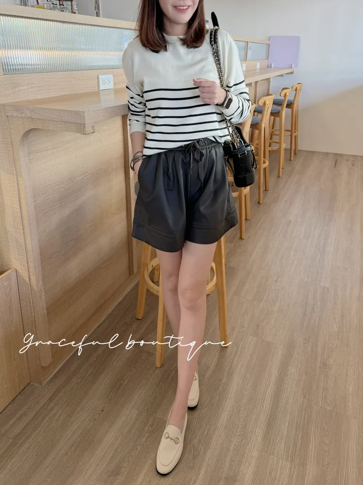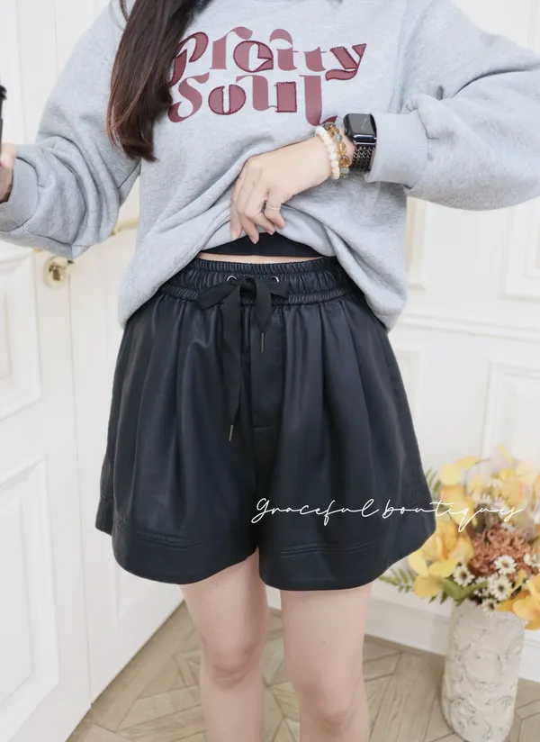 ⬇️黑色穿搭 ⬇️咖啡色穿搭 ⬇️米杏色穿搭 腰部鬆緊的設計比較顯瘦腰圍不受限這件皮短褲的版型比較修飾腿型面料摸起來也很舒服長度在膝蓋上方不會太短冬天怎麼可以少了皮短褲這個主角下單前代表您已詳閱並且同意我們的[購物須知]以及[售後服務]若都能接受再進行下單唷我們有實體店面 歡迎蒞臨試穿