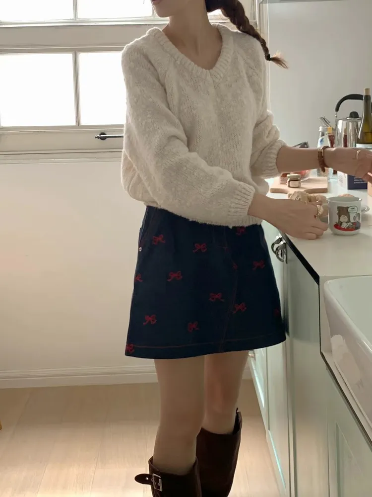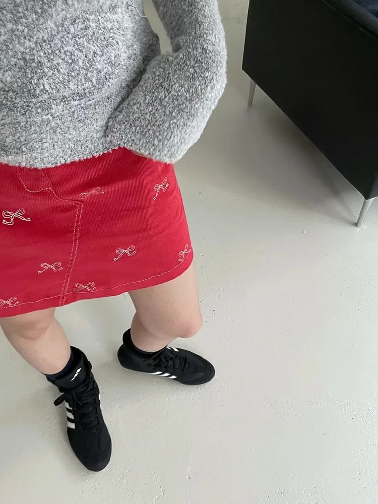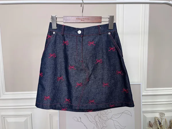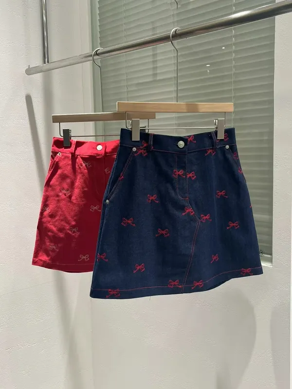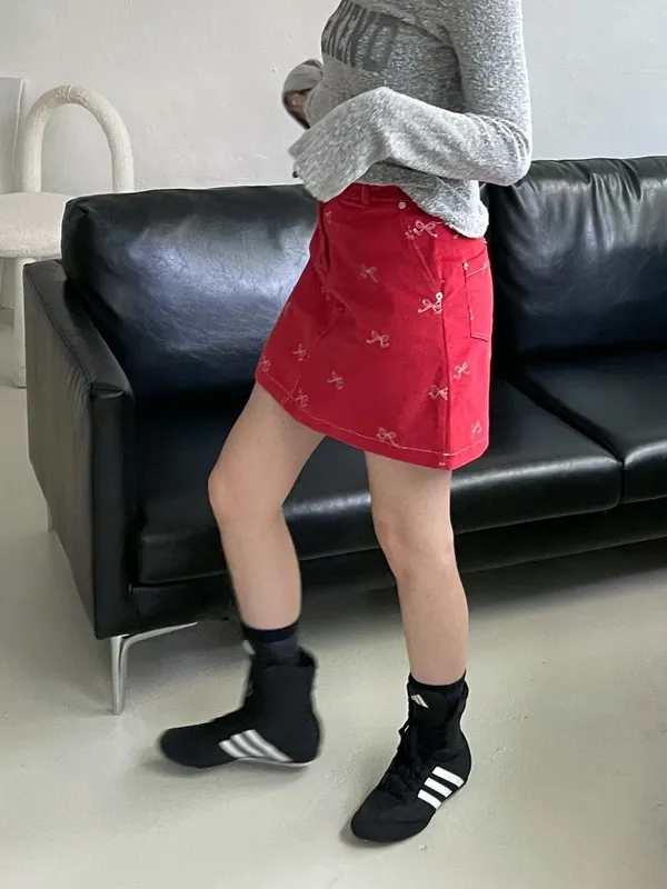 ●無內裡/布料無彈性 穿膩一成不變的牛仔短裙了嗎這一件絕對是你最佳選擇紅色蝴蝶結刺繡 超有質感帶一點甜美跟浪漫少女感加分讓你在甜美中又帶一點個性下單前代表您已詳閱並且同意我們的[購物須知]以及[售後服務]若都能接受再進行下單唷我們有實體店面 歡迎蒞臨試穿