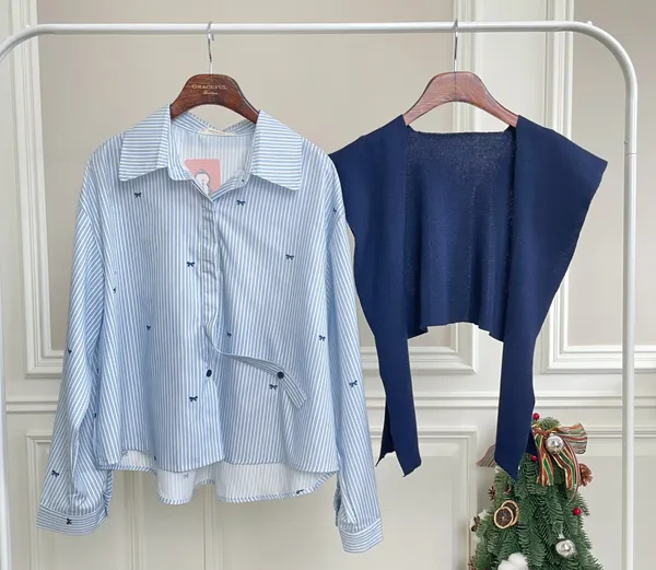超級特別的一款襯衫還有附披肩的設計這款不會厚重是薄的~南部美人可以放心入手喔~上面還有蝴蝶結帶點甜美中和掉了襯衫的中性感~~~下單前代表您已詳閱並且同意我們的[購物須知]以及[售後服務]若都能接受再進行下單唷我們有實體店面 歡迎蒞臨試穿
