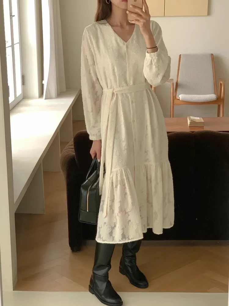 ▪ 有內裡/附綁帶 這款蕾絲洋裝精緻的細節展現出柔美與高貴不管是派對或者是約會都可以讓你成為正式的焦點而且穿起來非常的舒服腰間綁帶的設計讓你可以自由調整讓你修身又優雅下單前代表您已詳閱並且同意我們的[購物須知]以及[售後服務]若都能接受再進行下單唷我們有實體店面 歡迎蒞臨試穿