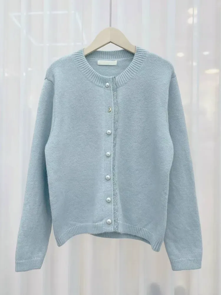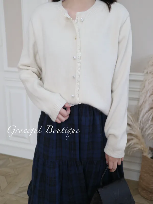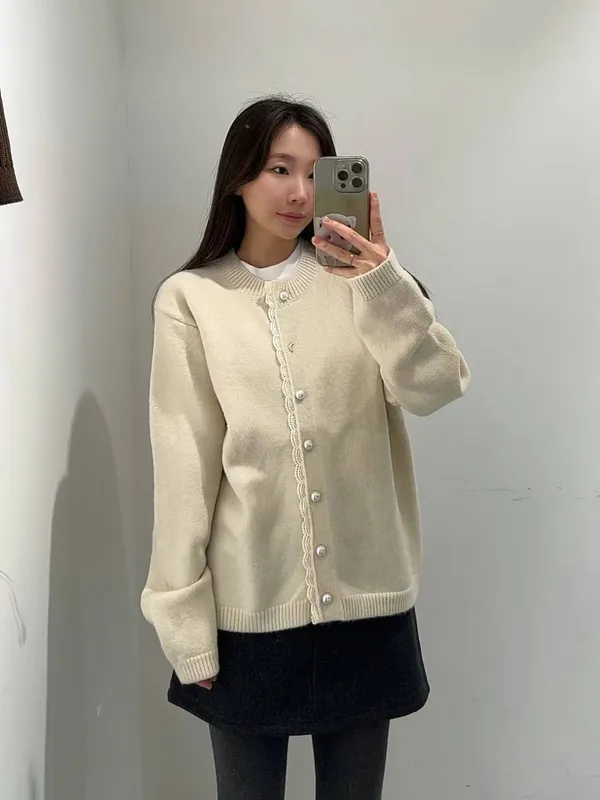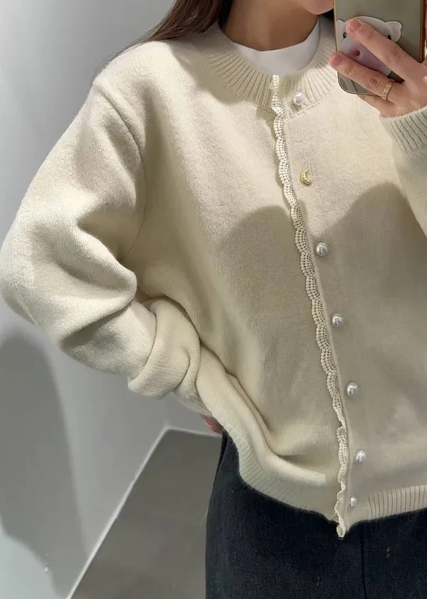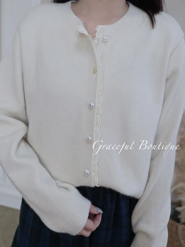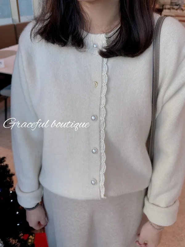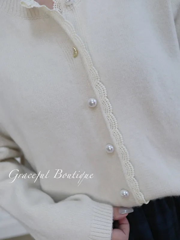 這款開襟單排扣針織毛料外套結合珍珠與蕾絲的設計帶給你優雅與知性的感覺穿起來也很親膚稍微寬鬆的版型單穿或者內搭高領都是一個很好的選擇下單前代表您已詳閱並且同意我們的[購物須知]以及[售後服務]若都能接受再進行下單唷我們有實體店面 歡迎蒞臨試穿