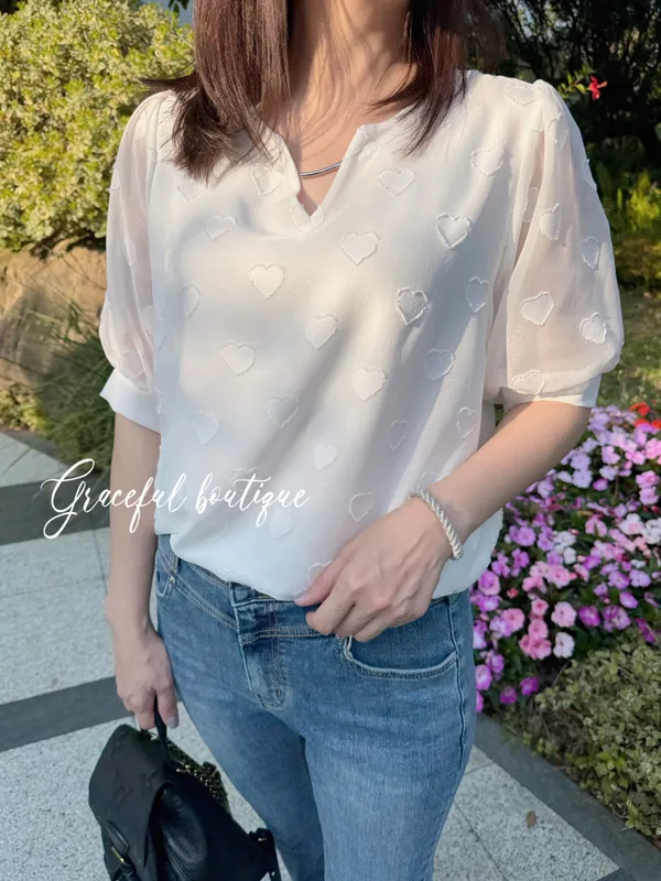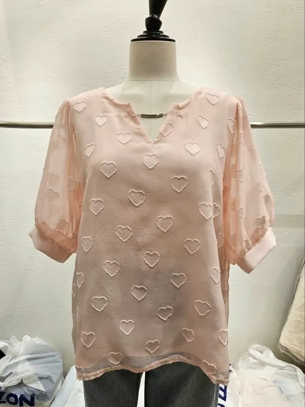 ▪ 有內裡 很特別的愛心壓紋上衣帶點甜美的感覺不會容易皺的材質夏天穿沒問題是薄的喔~~這件真的很推薦~別緻又優雅!!!下單前代表您已詳閱並且同意我們的[購物須知]以及[售後服務]若都能接受再進行下單唷我們有實體店面 歡迎蒞臨試穿
