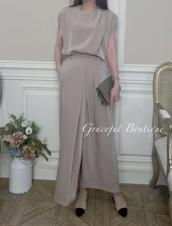 ●裙子無內裡 ⬇️咖啡色示範 ⬇️卡其色示範 ⬇️米白色示範 很光滑很舒服的材質夏天穿很適合是涼感材質穿整套超有氣質~也可以分開搭配喔!!質感真的很好!!!下單前代表您已詳閱並且同意我們的[購物須知]以及[售後服務]若都能接受再進行下單唷我們有實體店面 歡迎蒞臨試穿