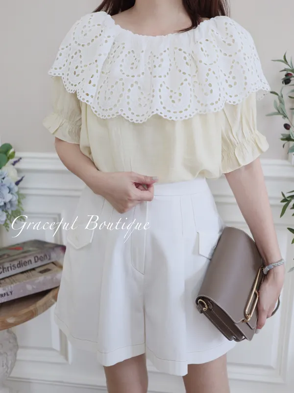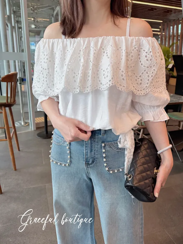 這件蕾絲領上衣可以正常領也可以露肩喔~蕾絲很美不會扎不會刺很舒服涼爽的材質~喜歡露肩的美人快買起來🧡 下單前代表您已詳閱並且同意我們的[購物須知]以及[售後服務]若都能接受再進行下單唷我們有實體店面 歡迎蒞臨試穿