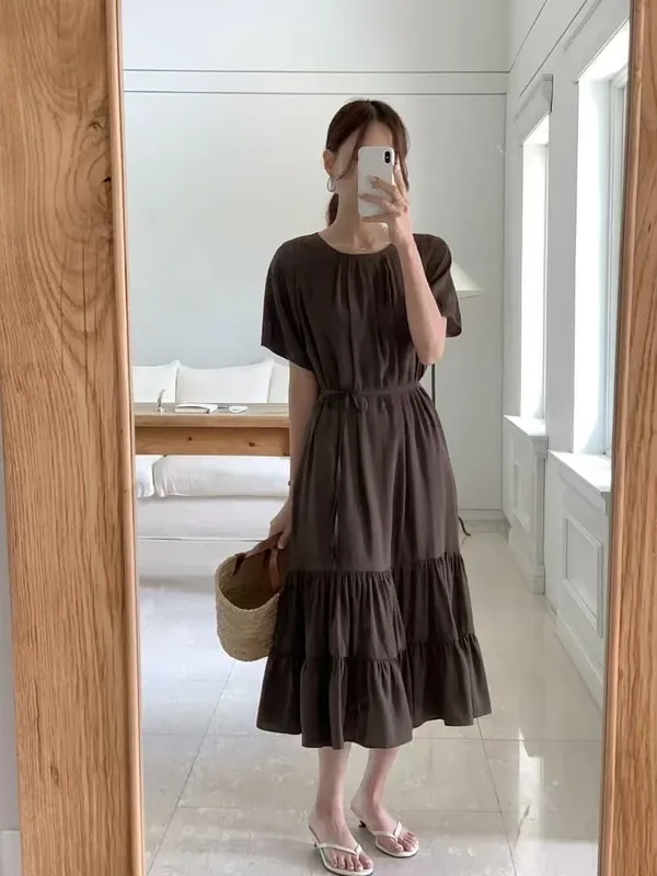 ●附綁帶/有內裡設計 混棉的連身洋裝下擺蛋糕裙的設計腰帶可以自行調整夏天的材質穿起來非常的舒服透氣不喜歡穿褲子的美人還有雙口袋喔~一定要選擇這一件是夏天必備的洋裝❤️下單前代表您已詳閱並且同意我們的[購物須知]以及[售後服務]若都能接受再進行下單唷我們有實體店面 歡迎蒞臨試穿