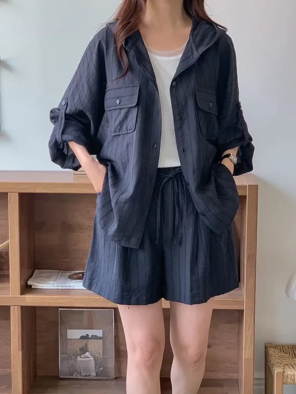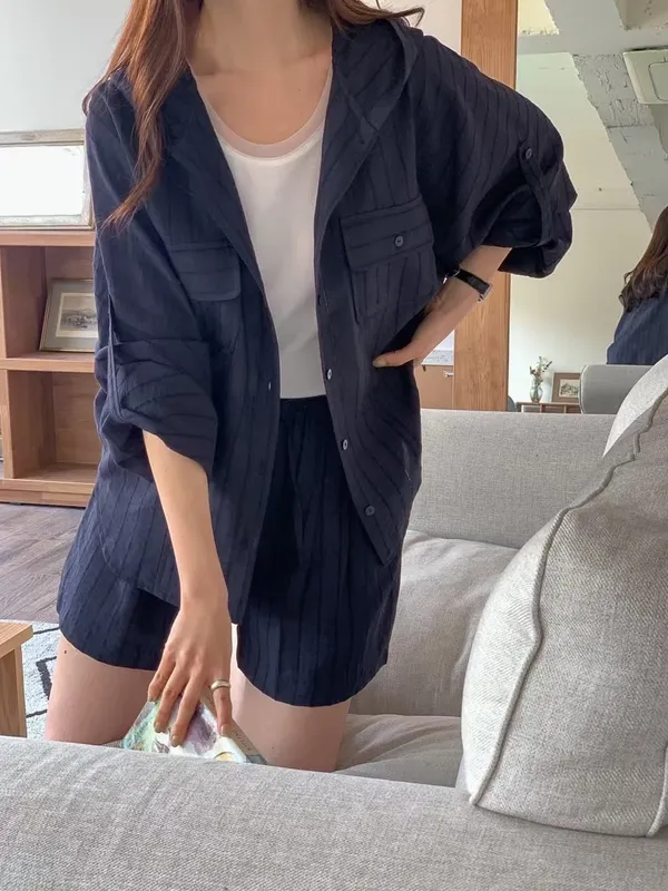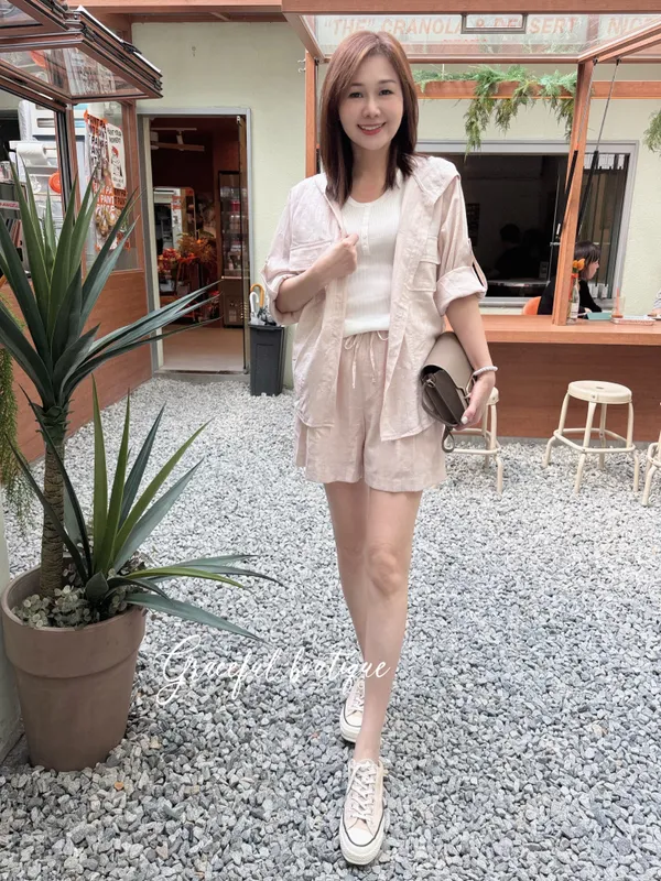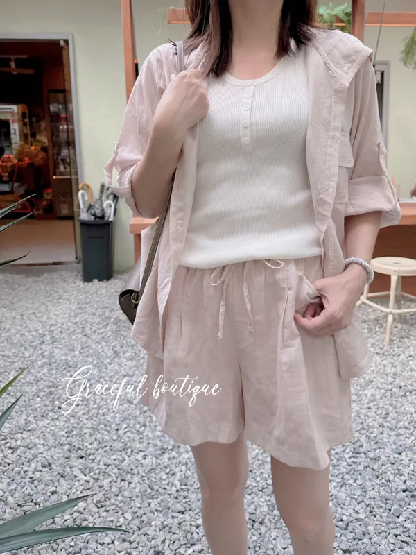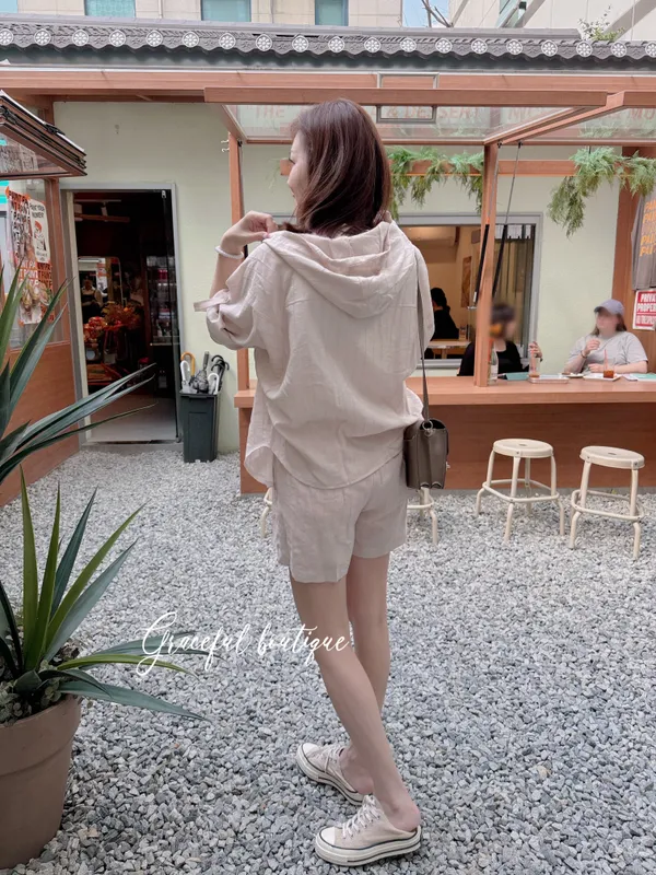 ●褲子有內裡設計 上衣屬於薄透布料,會建議內搭小背心唷~ 這款棉質連帽上衣搭配同款鬆緊腰圍短褲~短褲有內裡穿起來很舒服一整套出門非常的方便裡面只要內搭背心就很有造型上衣可以反折到7分袖釦起來~也可以當外套Cp值超高的一套💛 下單前代表您已詳閱並且同意我們的[購物須知]以及[售後服務]若都能接受再進行下單唷我們有實體店面 歡迎蒞臨試穿