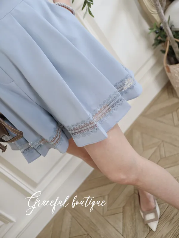 ●有內裡 這款花邊褲腳褲裙後面鬆緊腰所以彈性很好穿起來很舒服材質是夏天涼感的有內裡不用擔心走光讓你有夏天的涼感又可以擁有浪漫小姐姐的氣息喔下單前代表您已詳閱並且同意我們的[購物須知]以及[售後服務]若都能接受再進行下單唷我們有實體店面 歡迎蒞臨試穿
