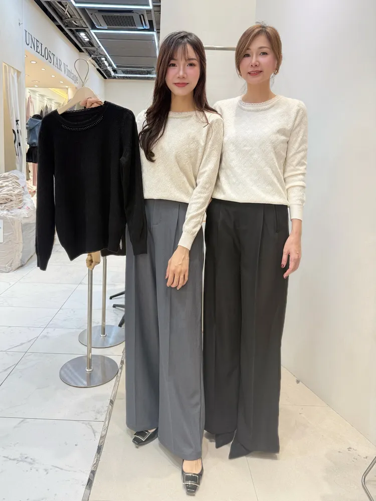 (特)領珍珠壓紋針織衣
