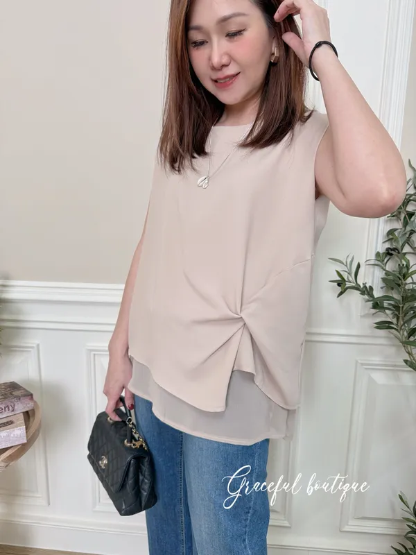 這款涼感背心有雙層設計裡面是拼接紗的材質穿起來一樣透氣親膚不扎不刺底部有扭結的設計非常的優雅長度遮住小腹搭配緊身褲或短褲也都是很好的選擇非常推薦~下單前代表您已詳閱並且同意我們的[購物須知]以及[售後服務]若都能接受再進行下單唷我們有實體店面 歡迎蒞臨試穿