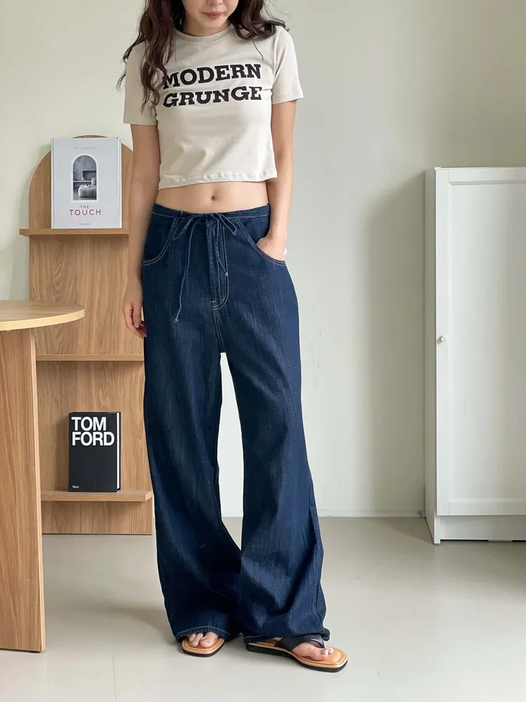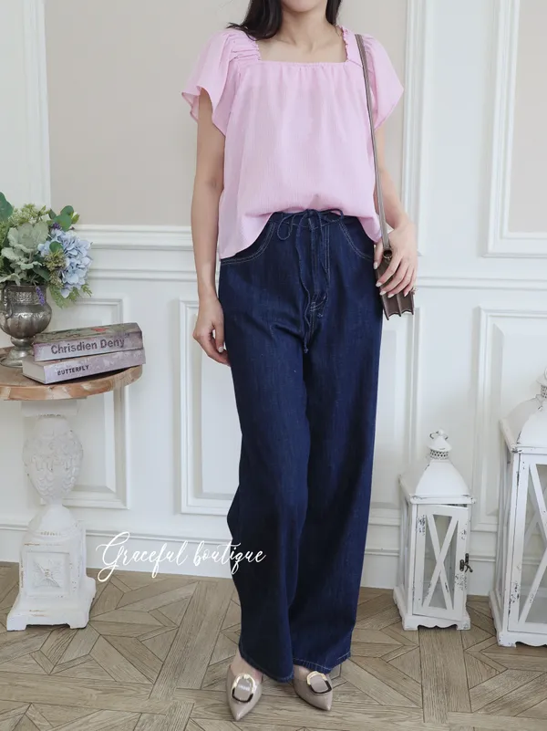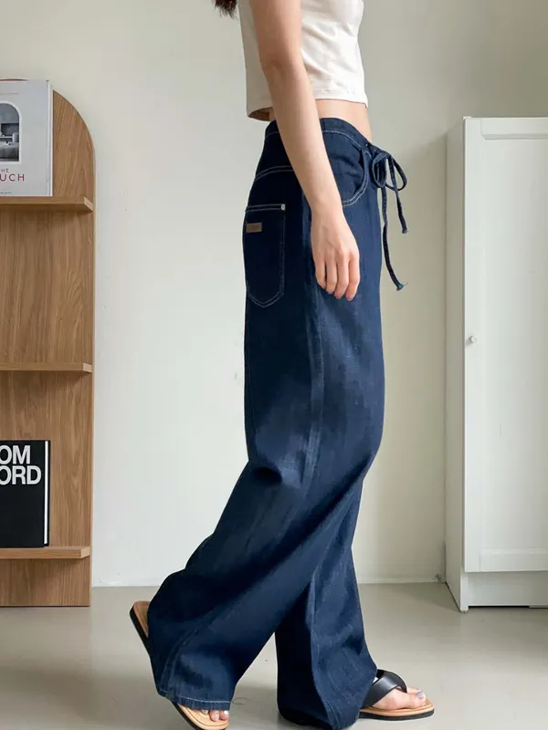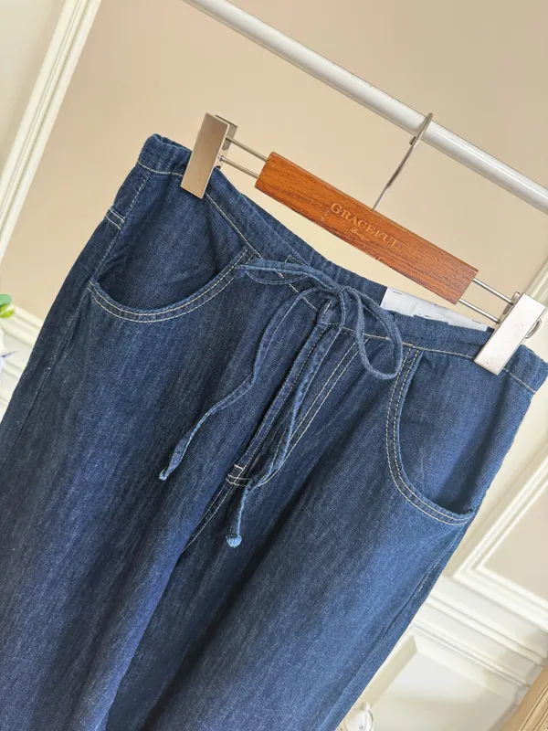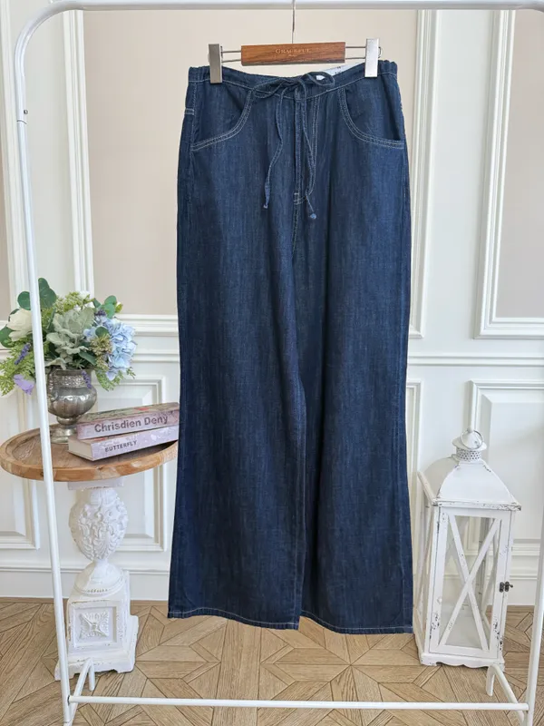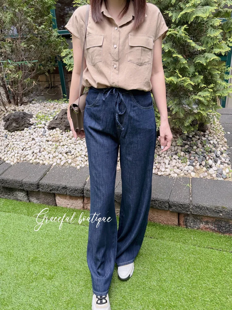 (特)綁帶牛仔寬褲