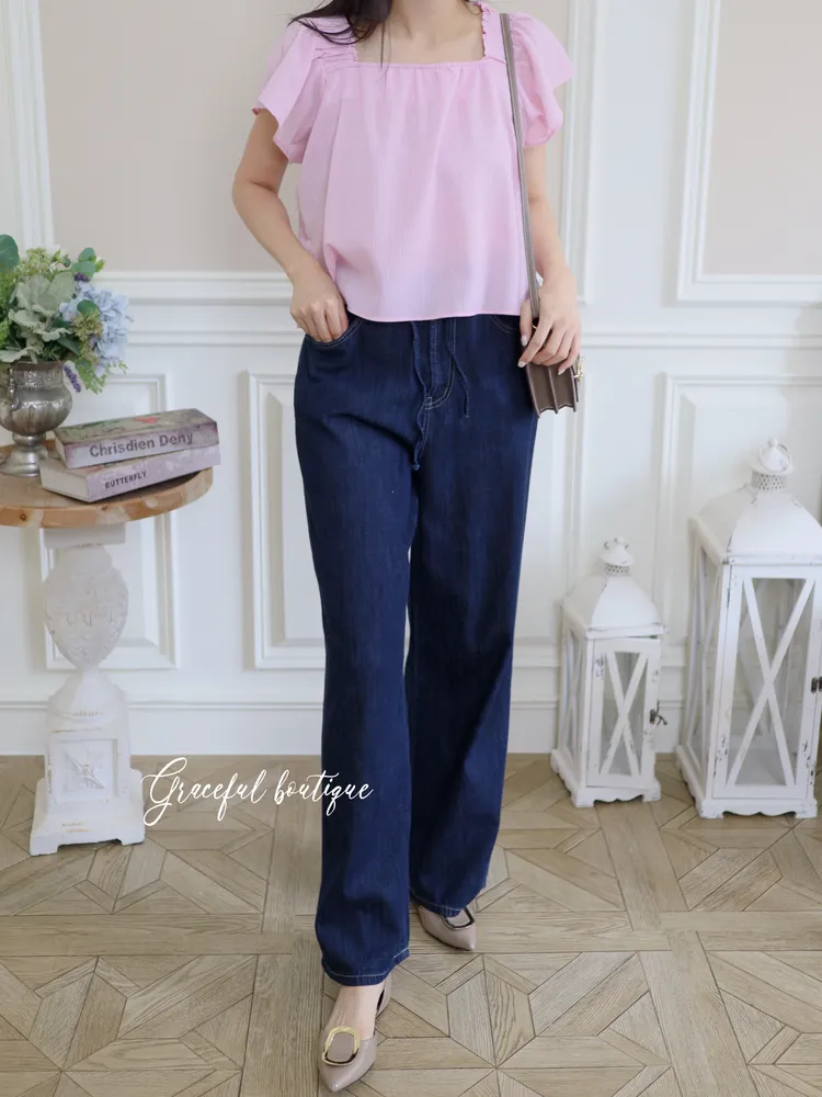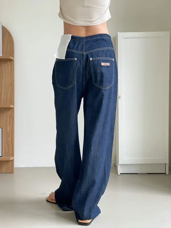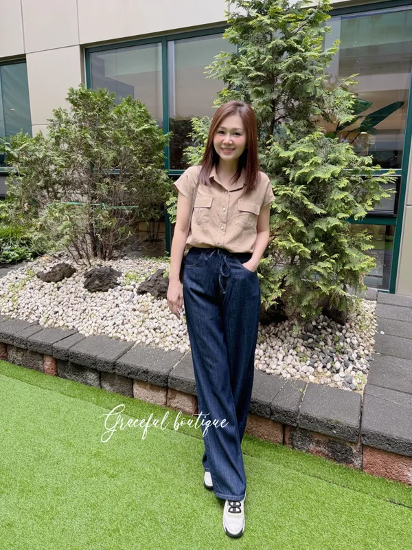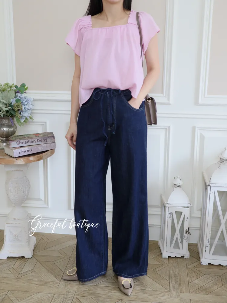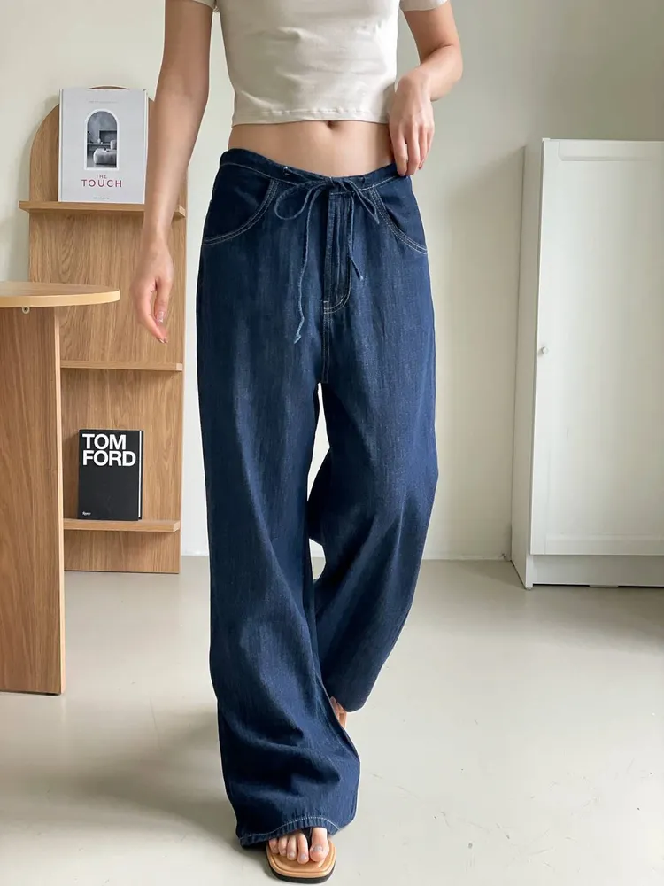 (特)綁帶牛仔寬褲