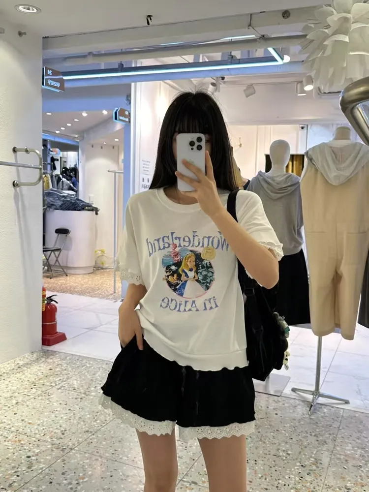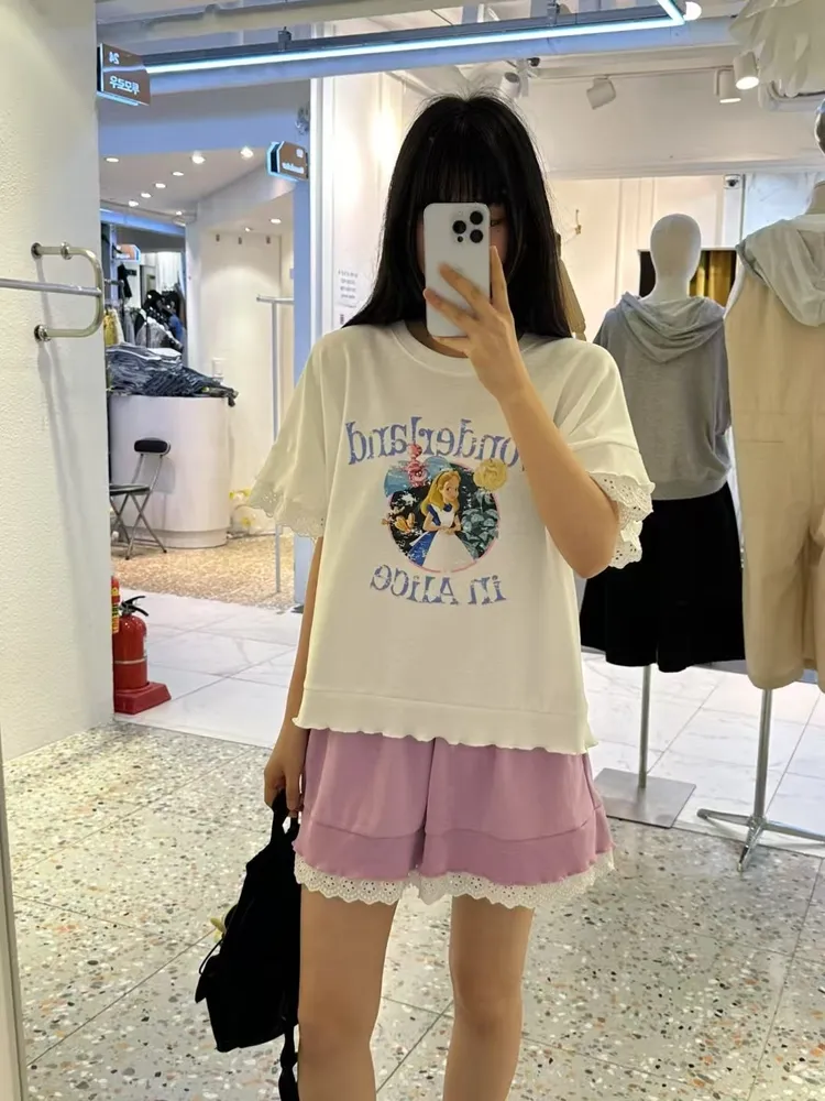 這款棉質彈性鬆緊腰短褲夏天材質穿起來舒服透氣~兩側口袋拼貼布蕾絲不札不刺非常地舒服長度也很剛好~很推薦同系列愛麗絲上一起搭配非常可愛~下單前代表您已詳閱並且同意我們的[購物須知]以及[售後服務]若都能接受再進行下單唷我們有實體店面 歡迎蒞臨試穿