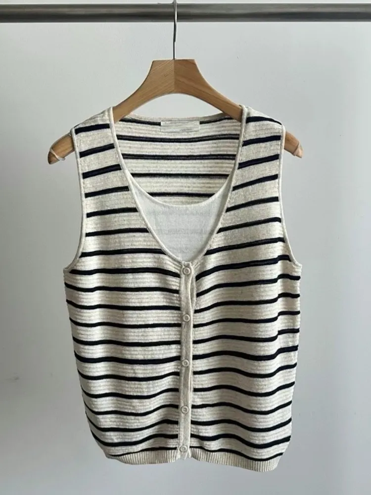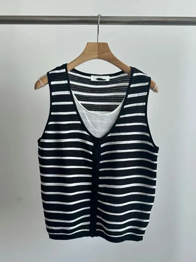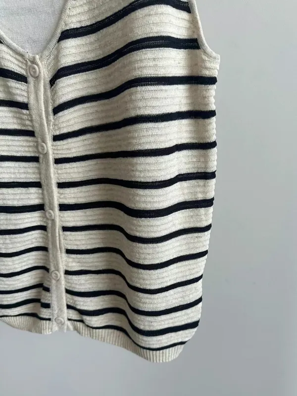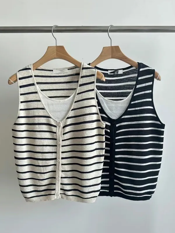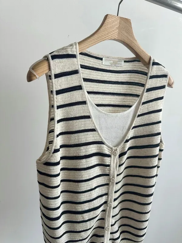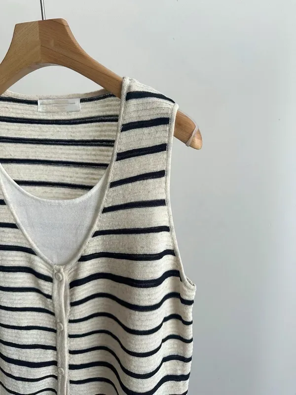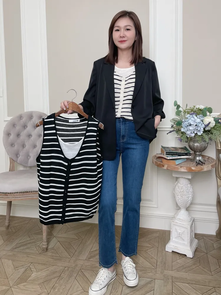 闆娘一穿上就瘋狂包色的條紋針織背心材質超級親膚透氣超級精緻前面有扣子也不會曝光請放心他是假兩件設計但很薄很舒服~很涼快喔!!下單前代表您已詳閱並且同意我們的[購物須知]以及[售後服務]若都能接受再進行下單唷我們有實體店面 歡迎蒞臨試穿