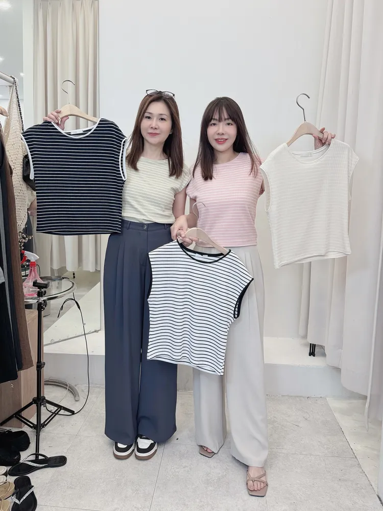 (特)條紋落肩棉T