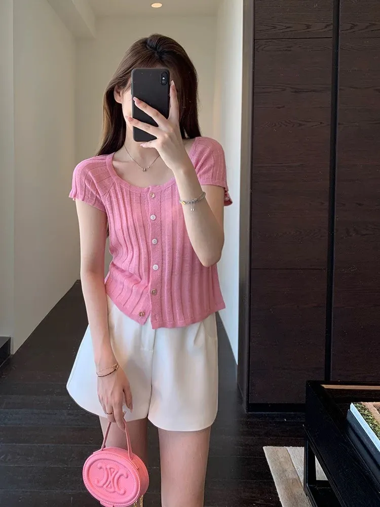 此款上衣材質較薄,建議另外內搭膚色內著唷~