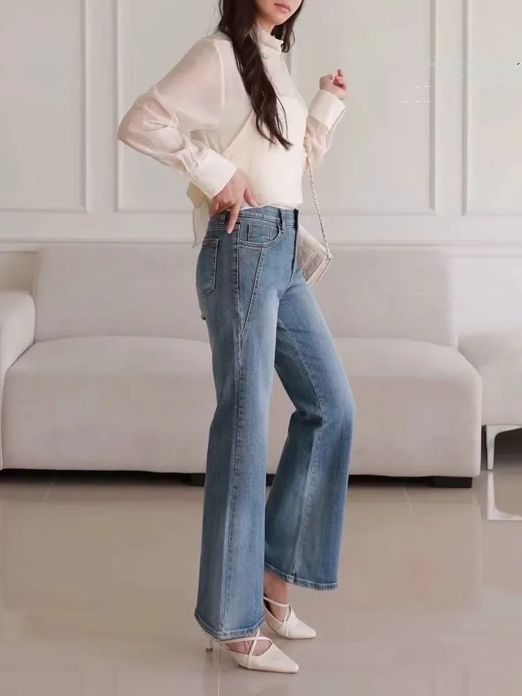 (特)刷色顯瘦微喇叭褲