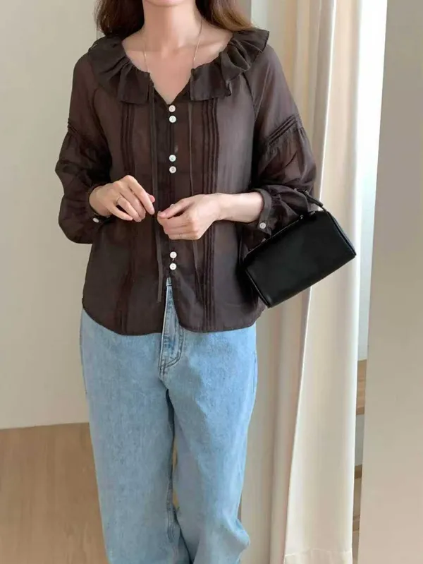 (特)荷葉透膚質感上衣