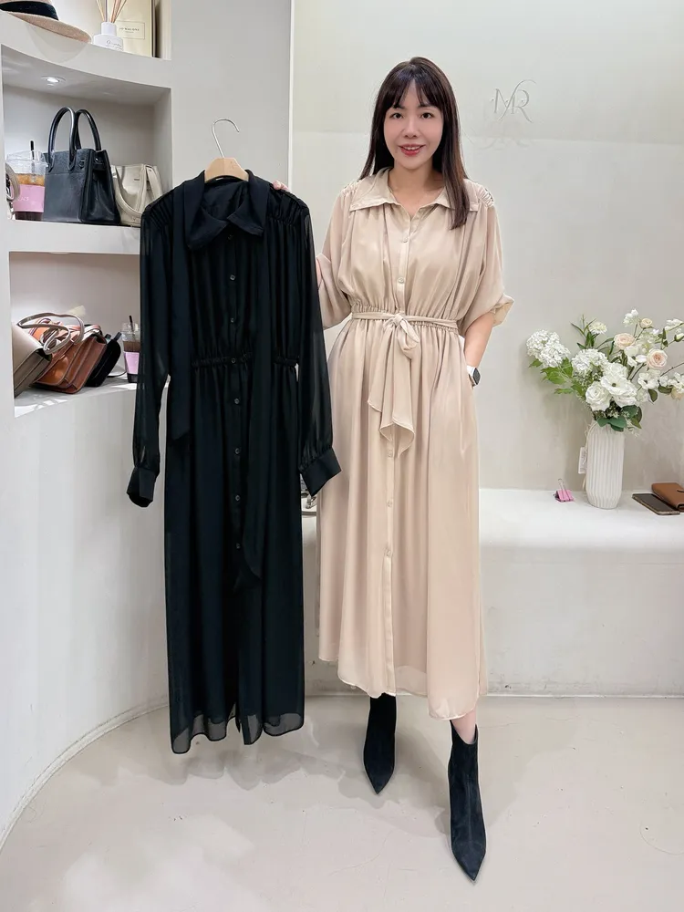 (特)抓皺質感綁帶洋