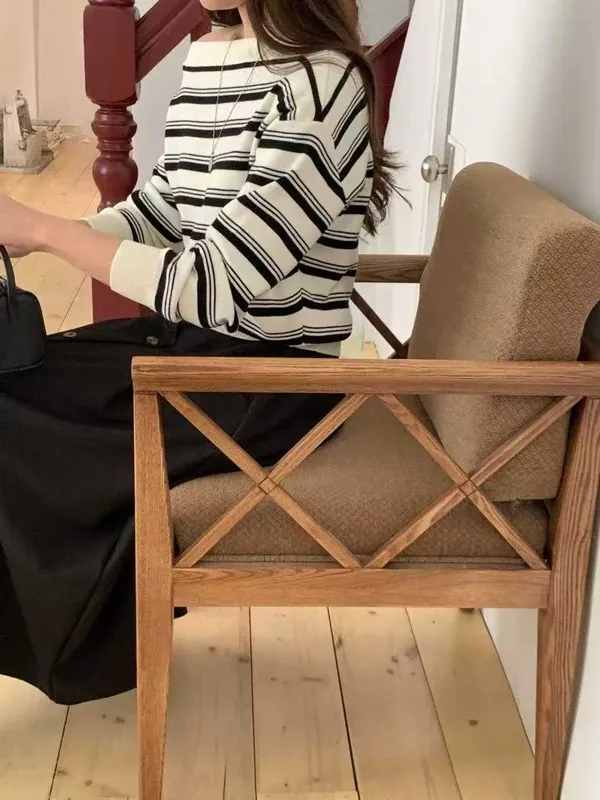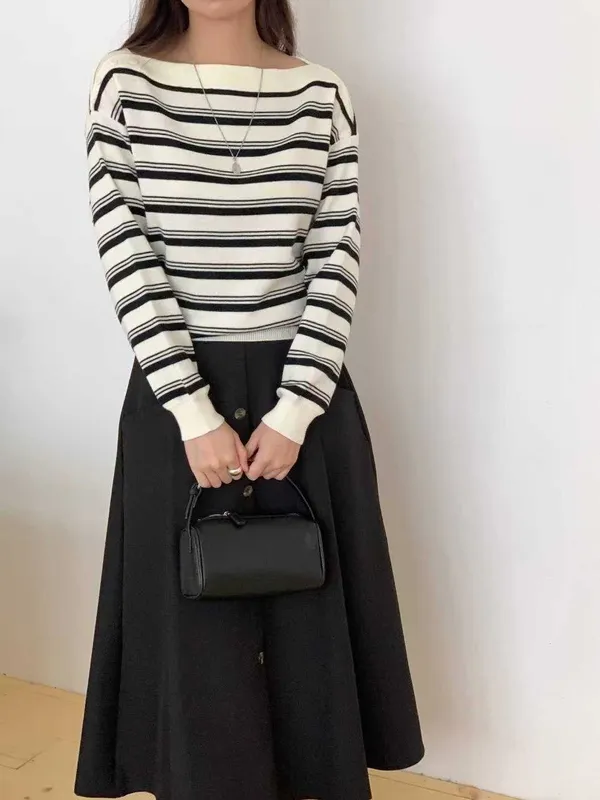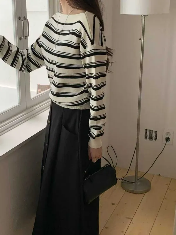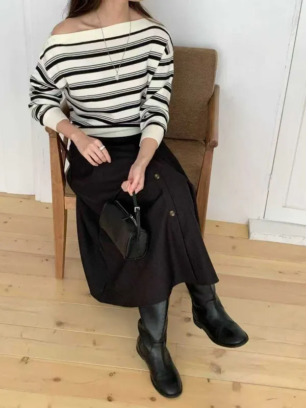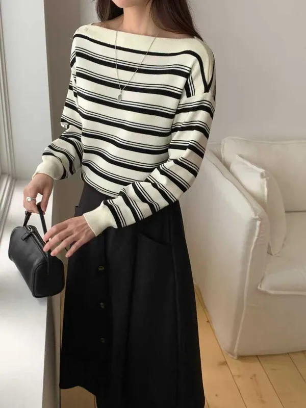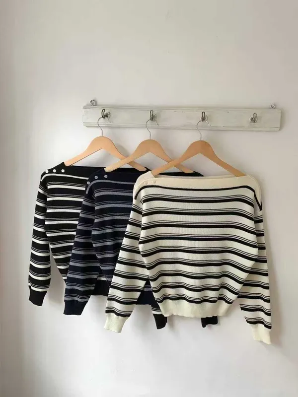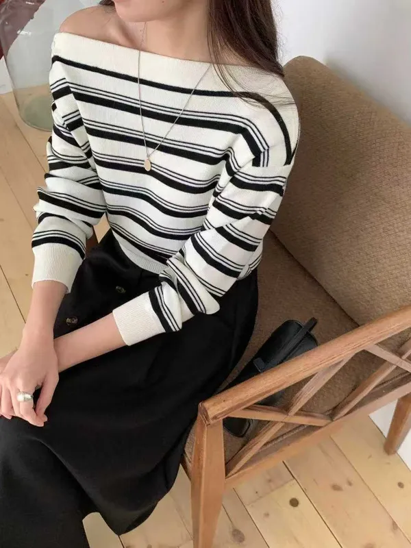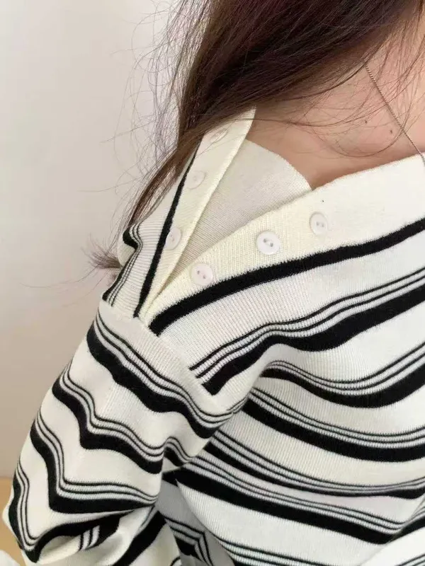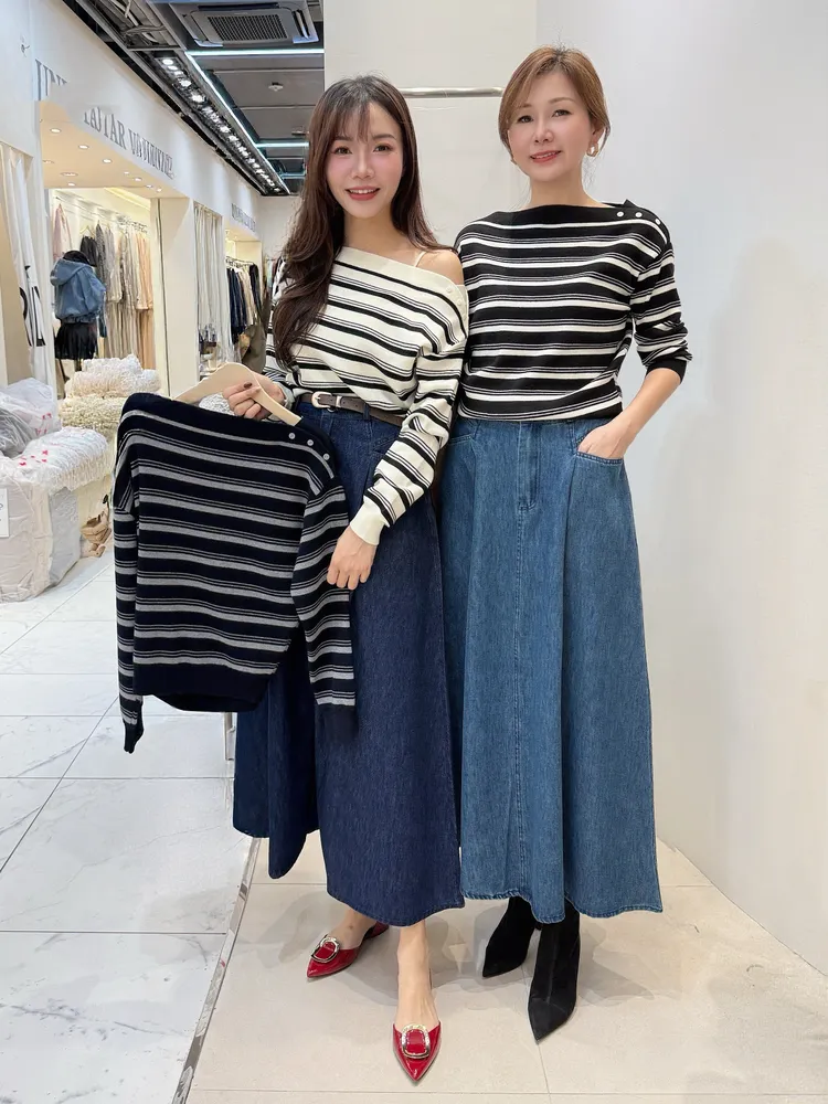 (特)肩造型條紋上衣