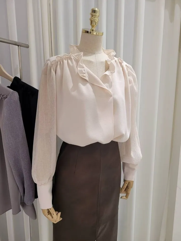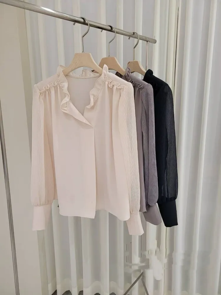 (特)木耳邊V領上衣