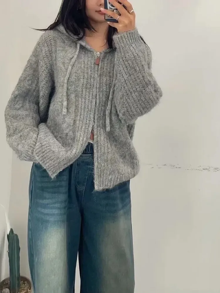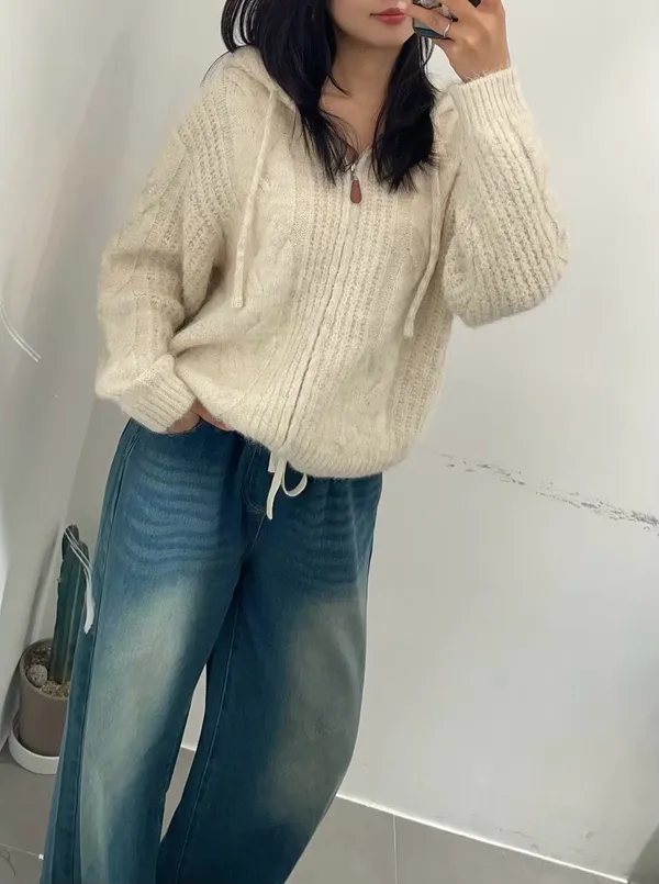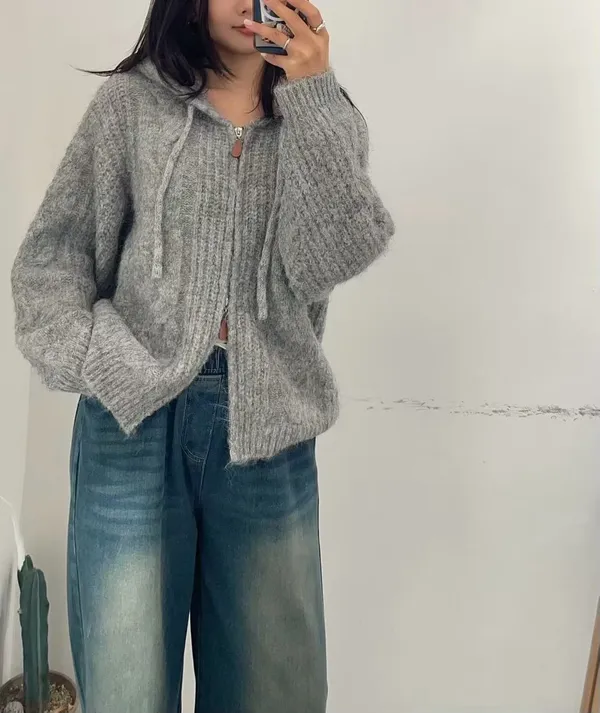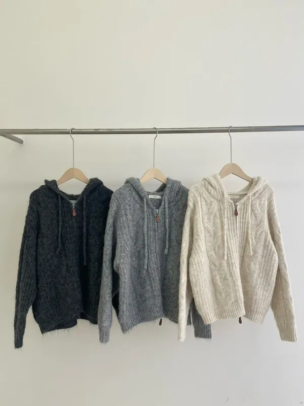 (特)雙開拉鍊連帽針織外
