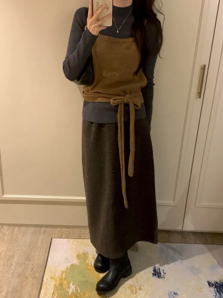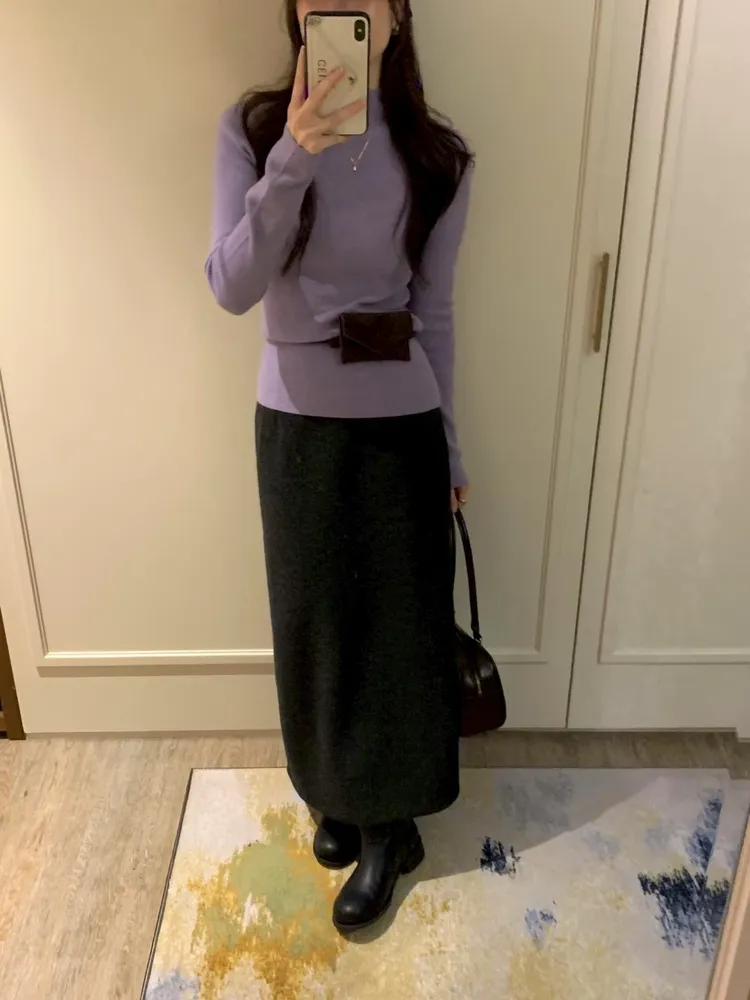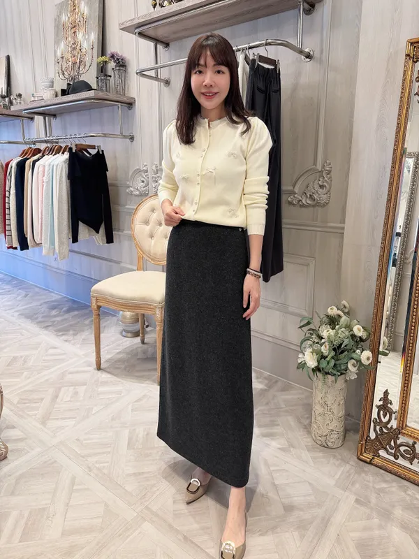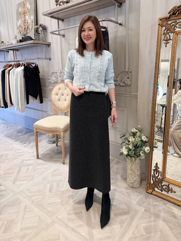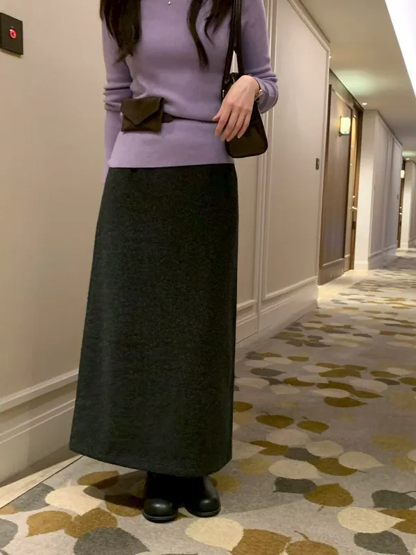 (特)日光A字毛料裙