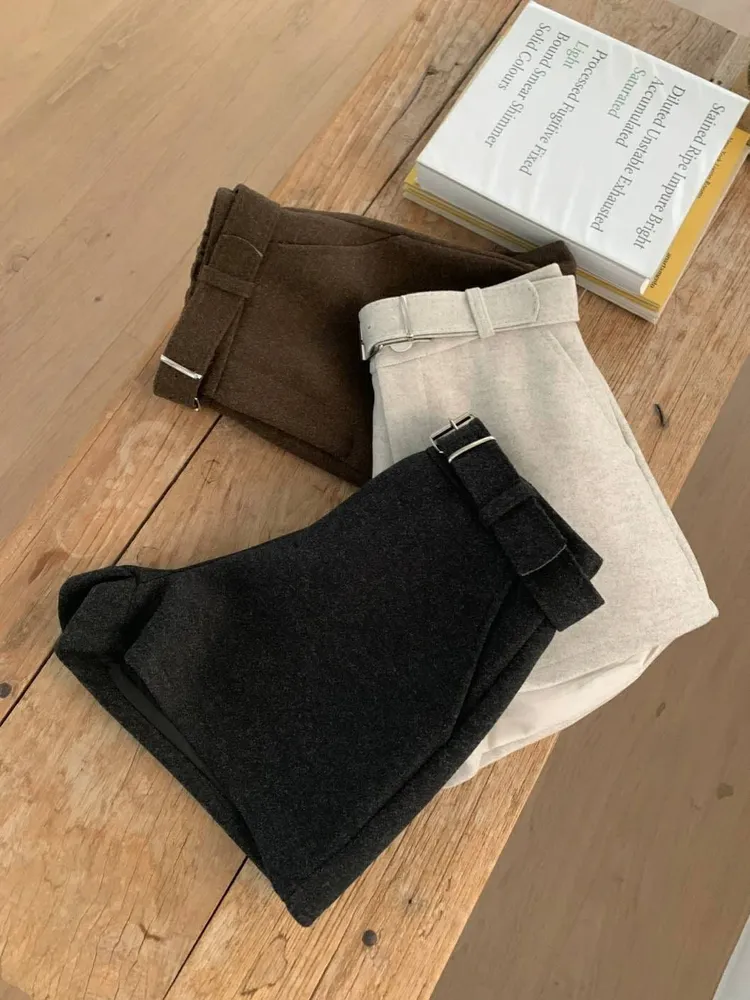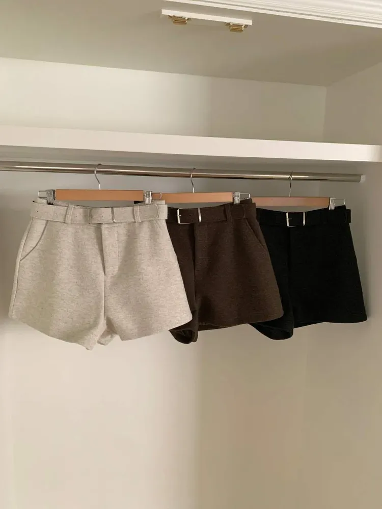 (特)附皮帶毛料短褲