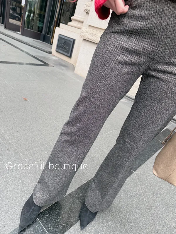 (特)人字紋喇叭毛料褲