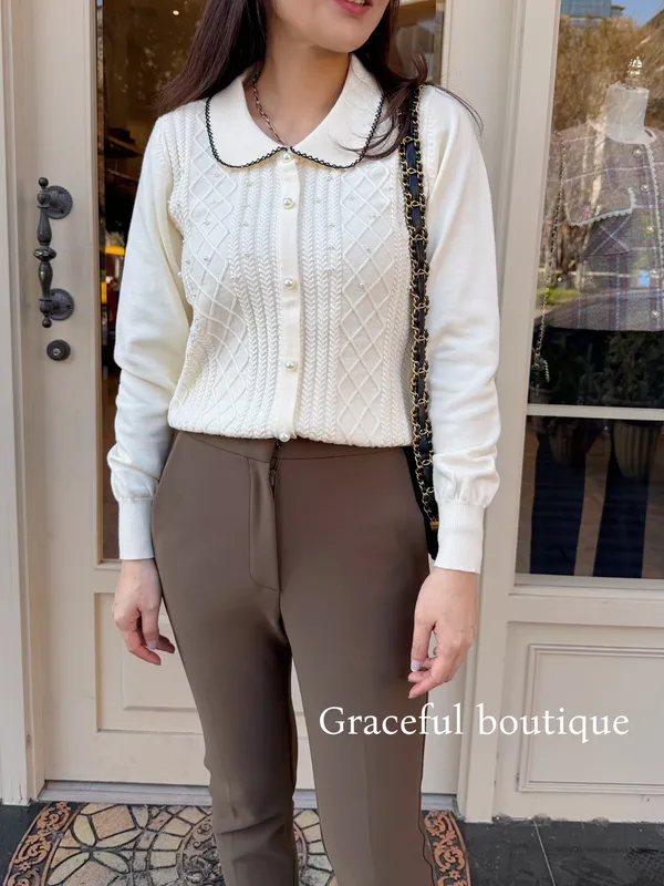 (特)小清新珍珠麻花衣