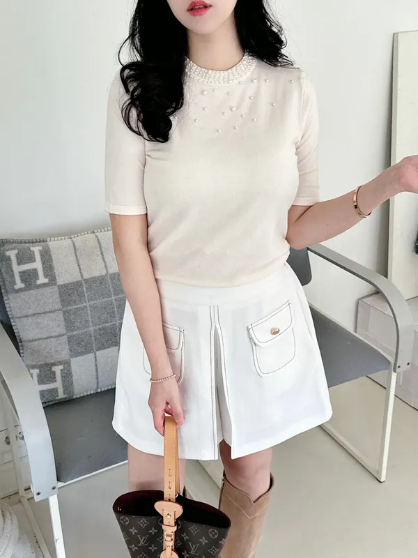 (特)雙口袋金釦短褲