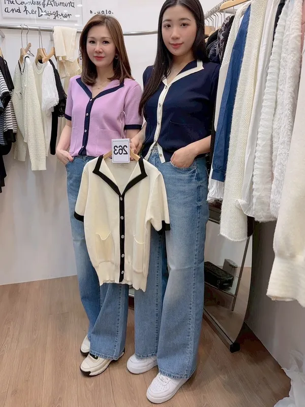 (特)撞色邊翻領排釦衣