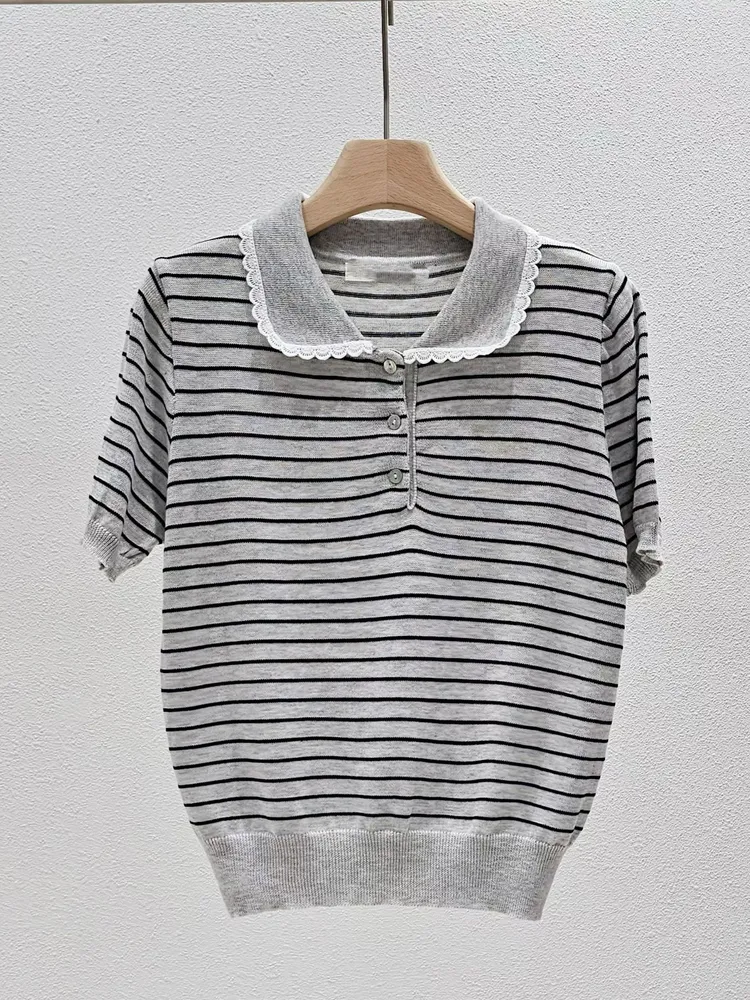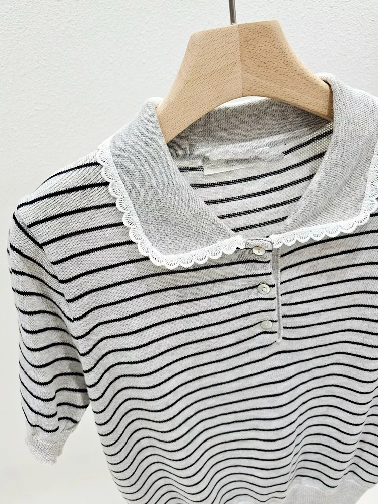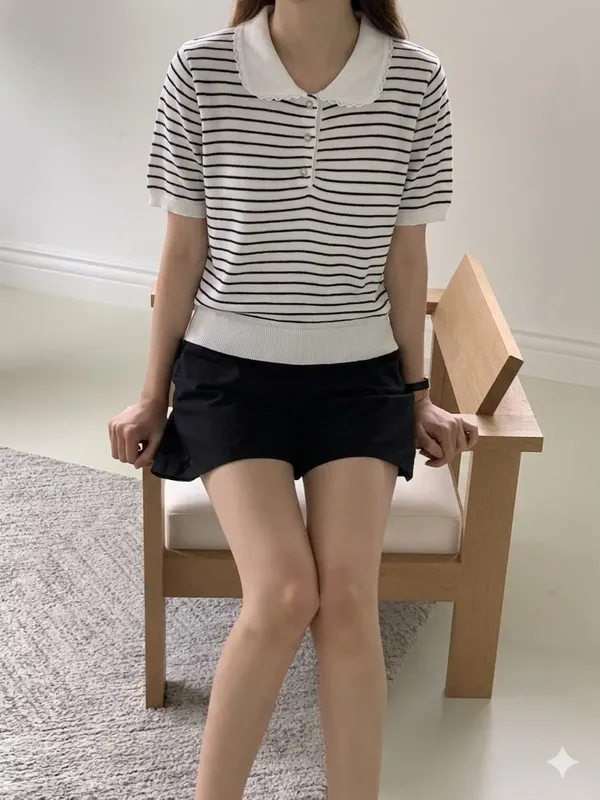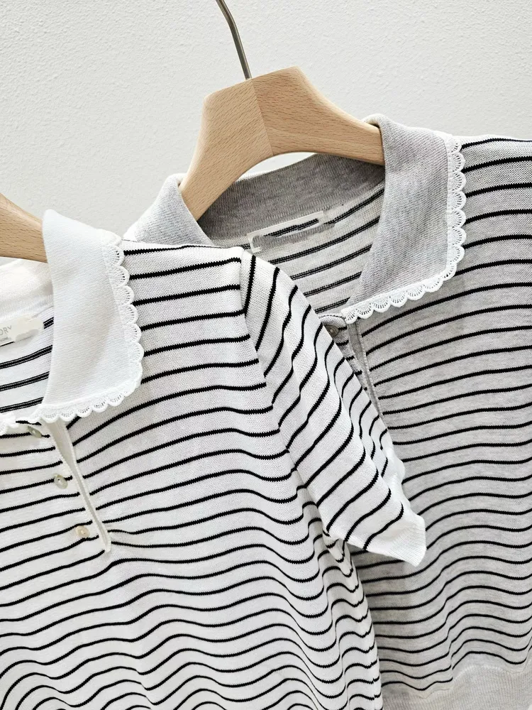 (特)條紋針織POLO上衣