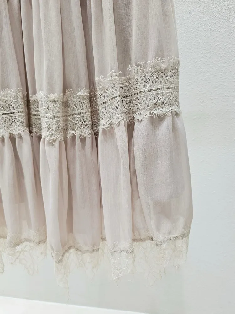 (特)拼接睫毛蕾絲雪紡裙