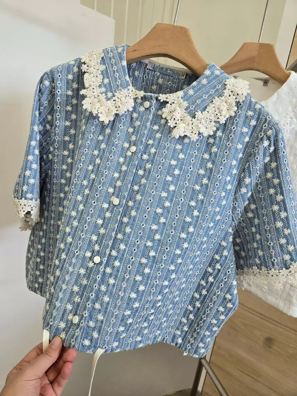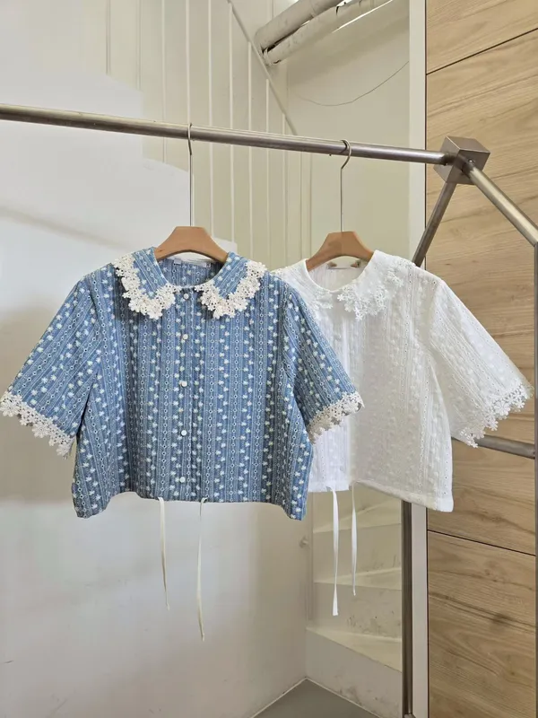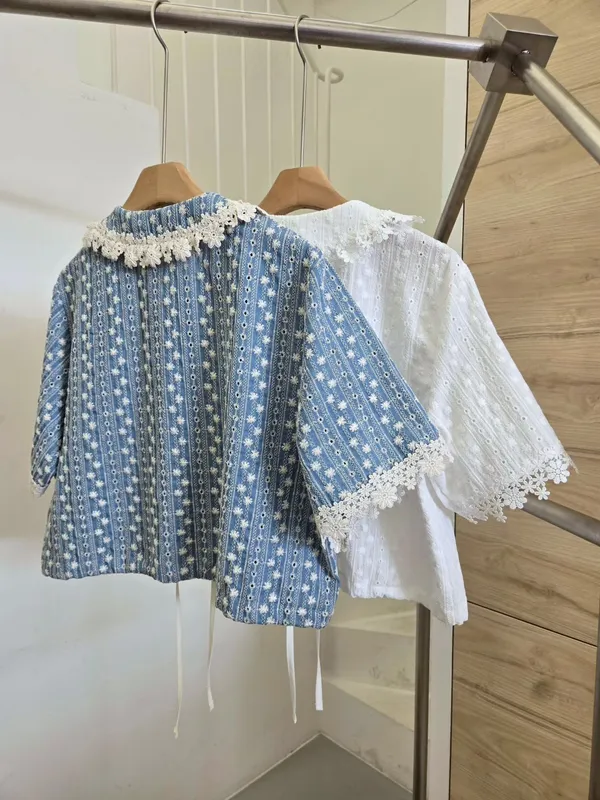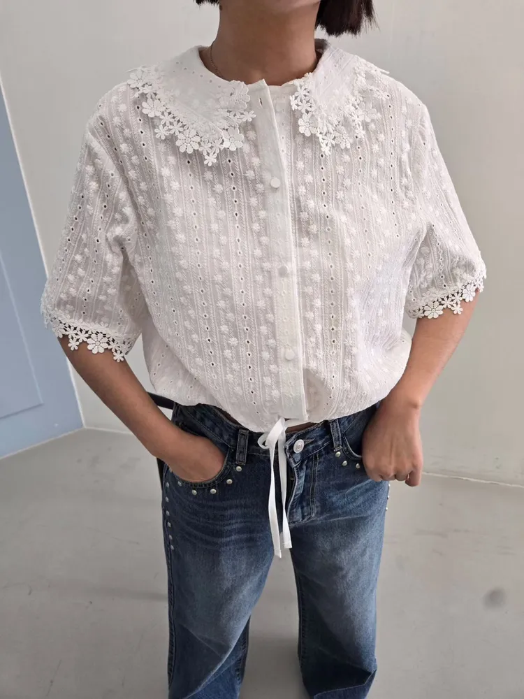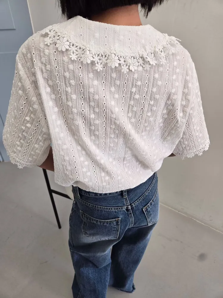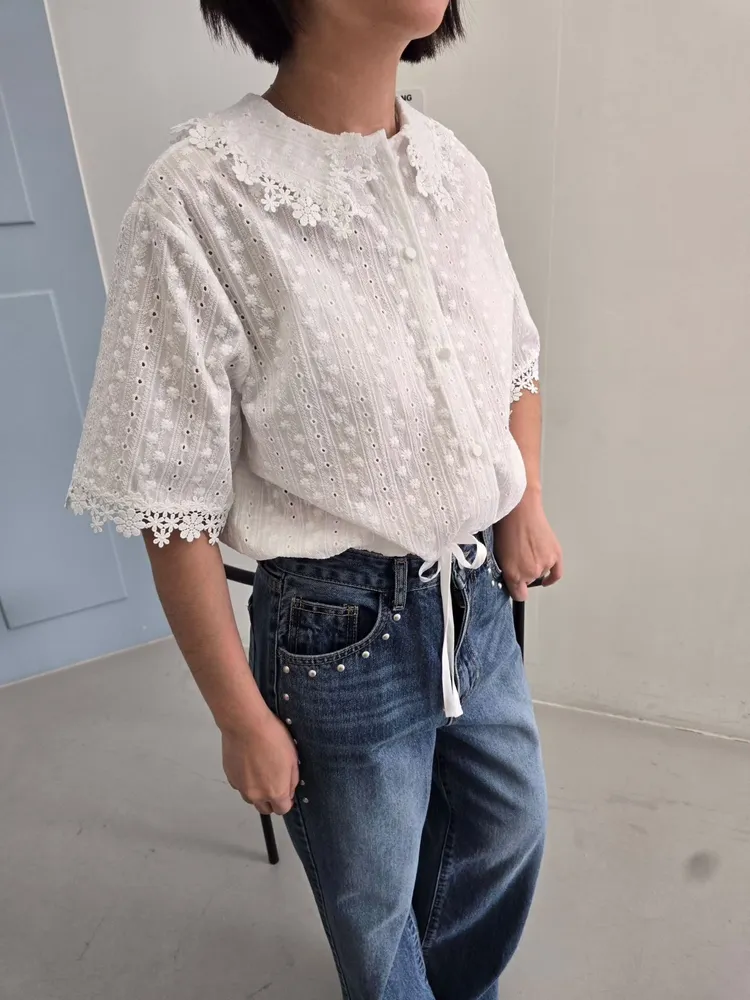 (特) 刺繡布蕾絲上衣